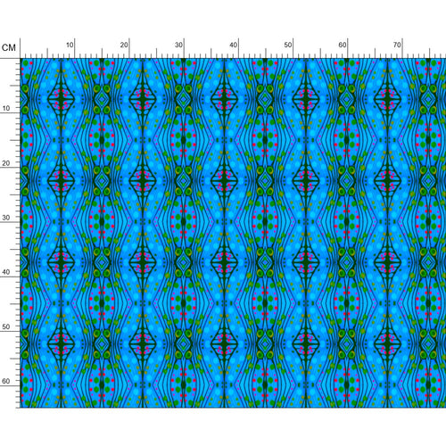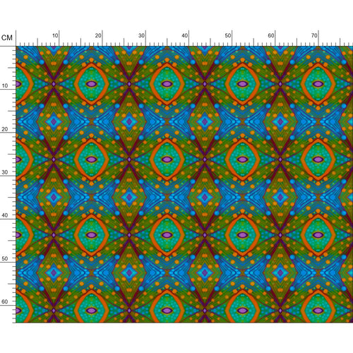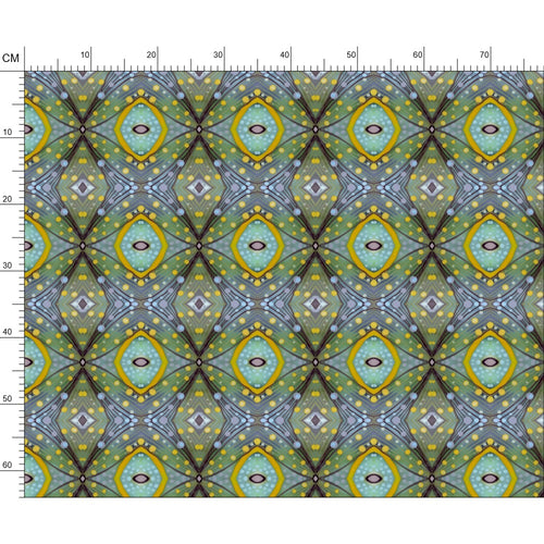 Soft Geometry patterned fabric in Blue and Peach by Mindy Macgregor