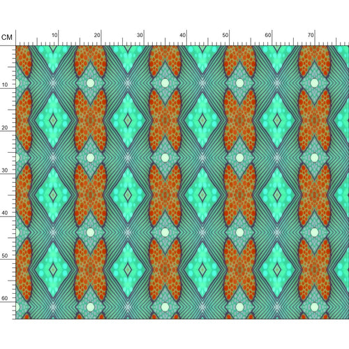 Nouveau-esque patterned fabric in Turquoise and Coral by Mindy Macgreg