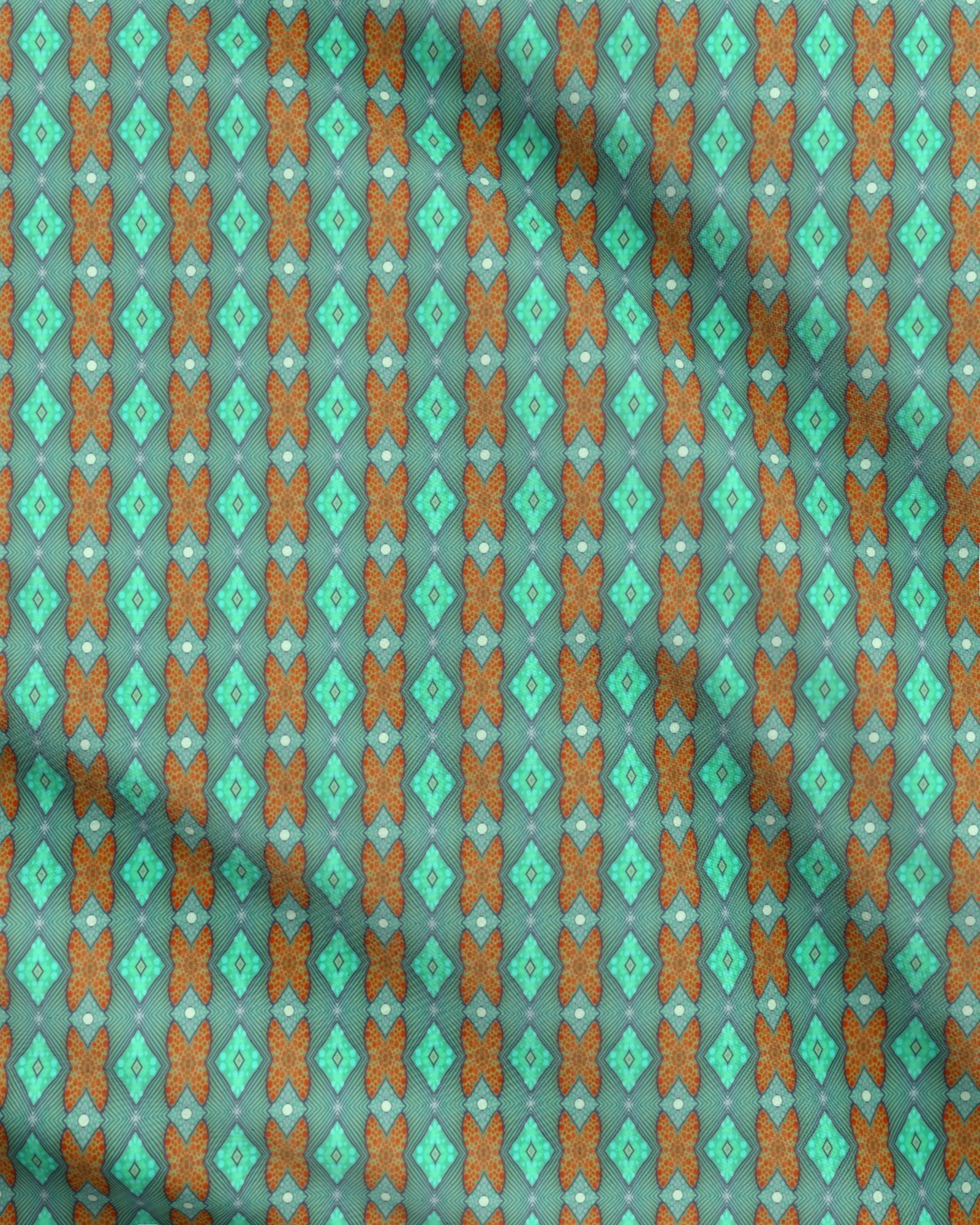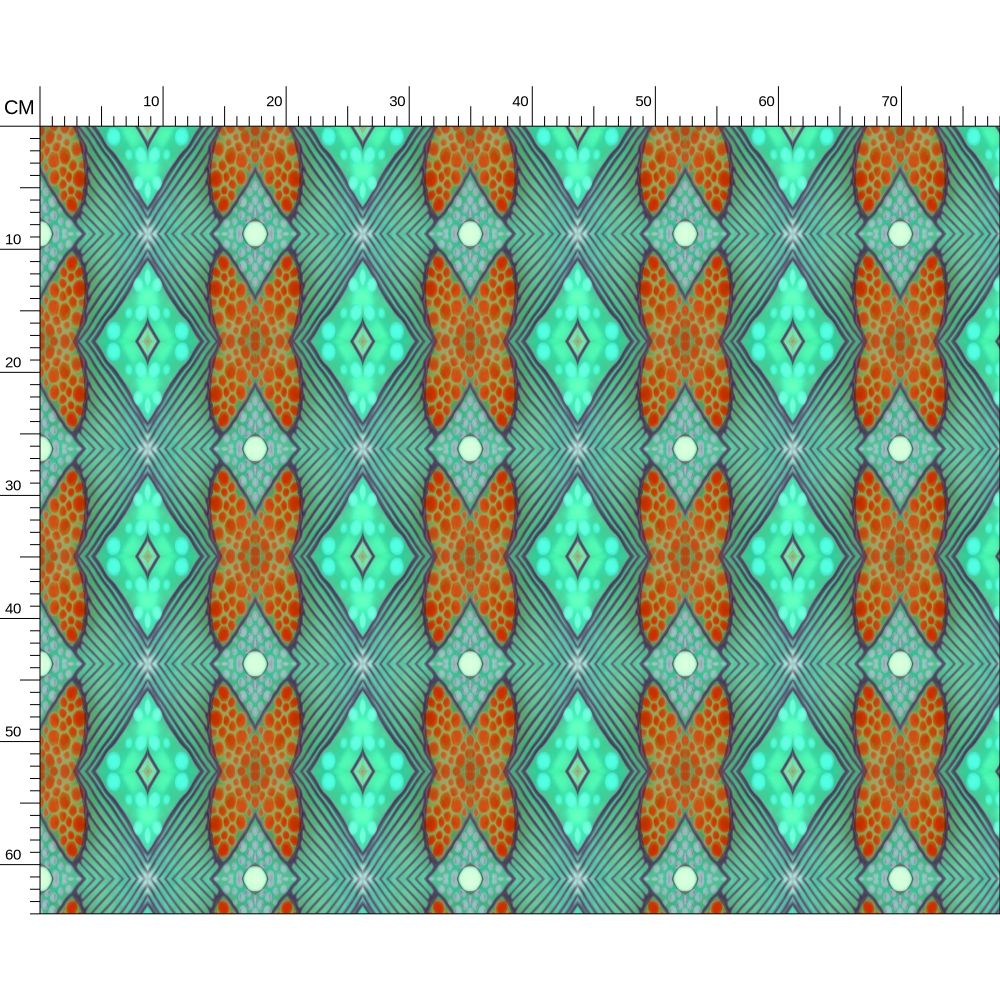 Soft Geometry patterned fabric in Aqua and Coral by Mindy Macgregor