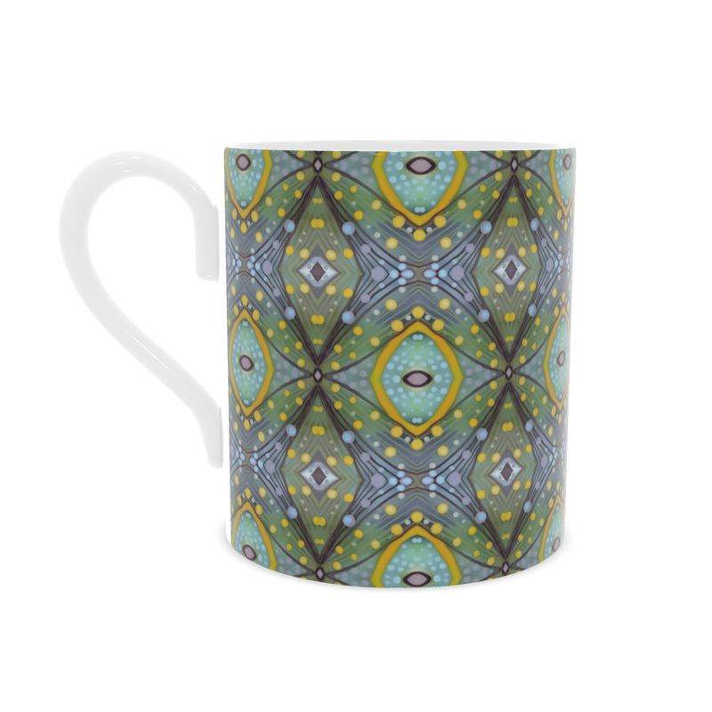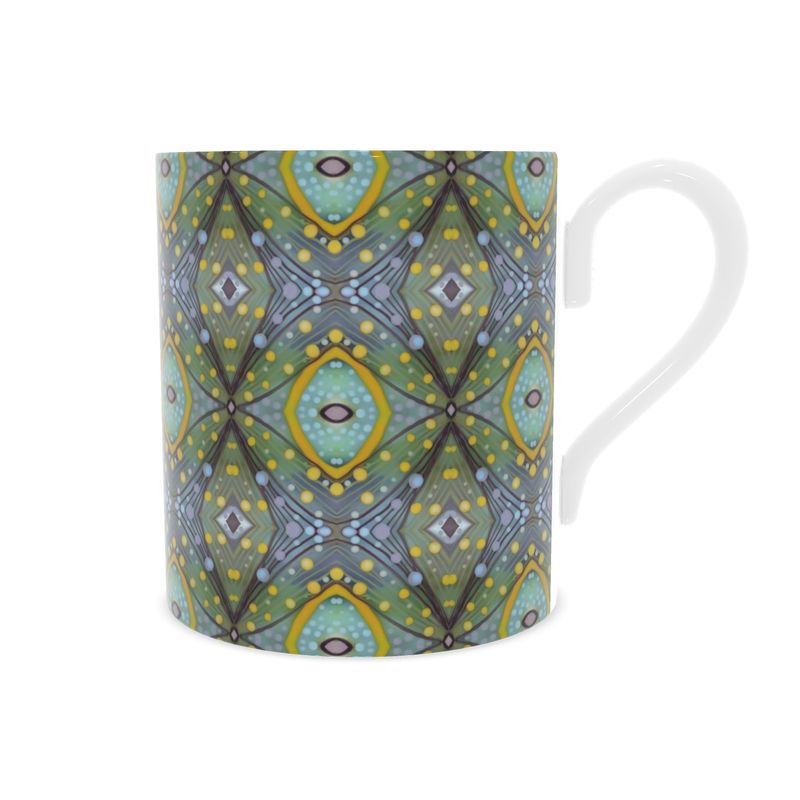 Beautiful, richly patterned mug based on the lampwork of Mindy Macgregor.