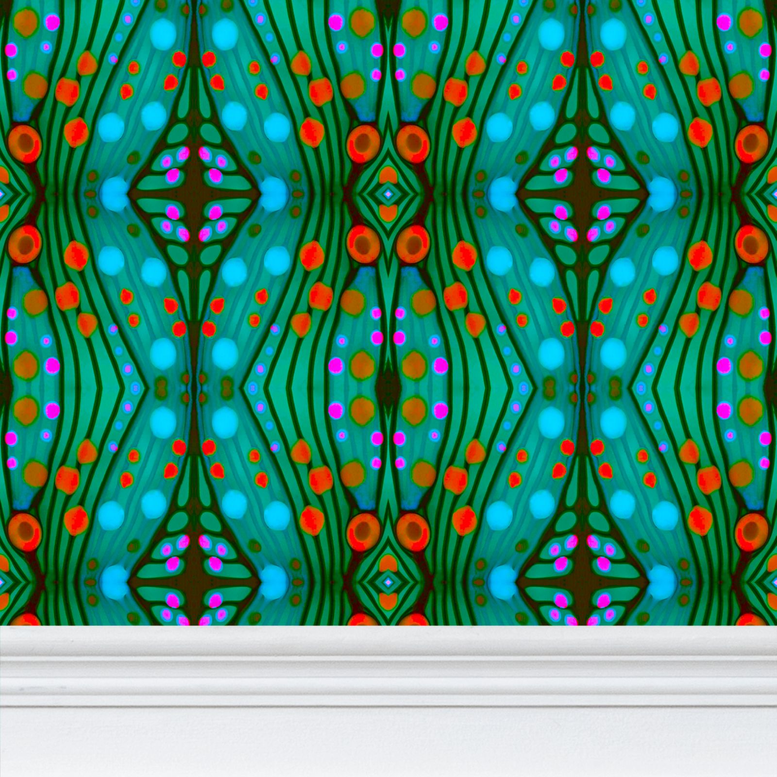 Beautiful, richly patterned nouveau-esque wallpaper based on the lampwork of Mindy Macgregor.