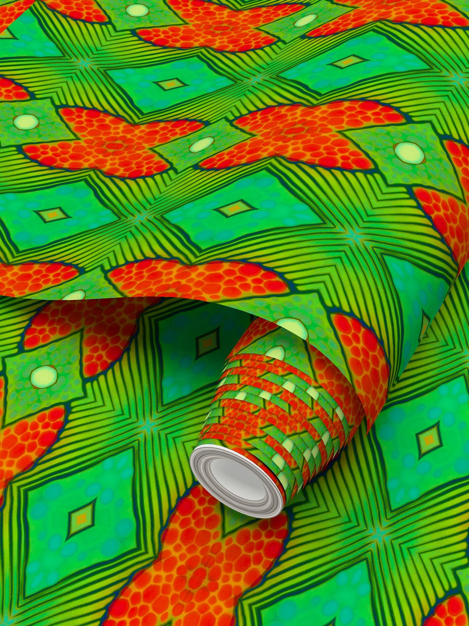 Beautiful, richly patterned soft geometric wallpaper based on the lampwork of Mindy Macgregor.