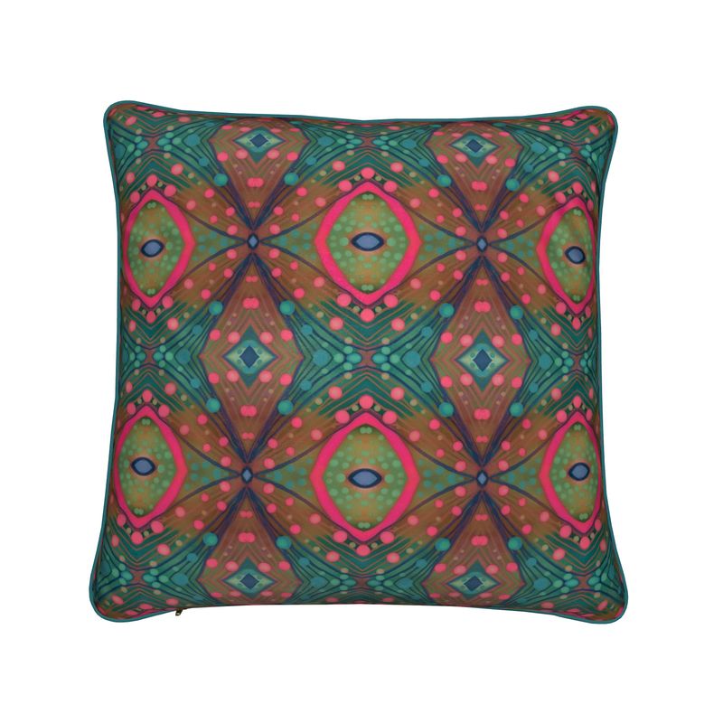 Beautiful, richly patterned cushion based on the lampwork of Mindy Macgregor.