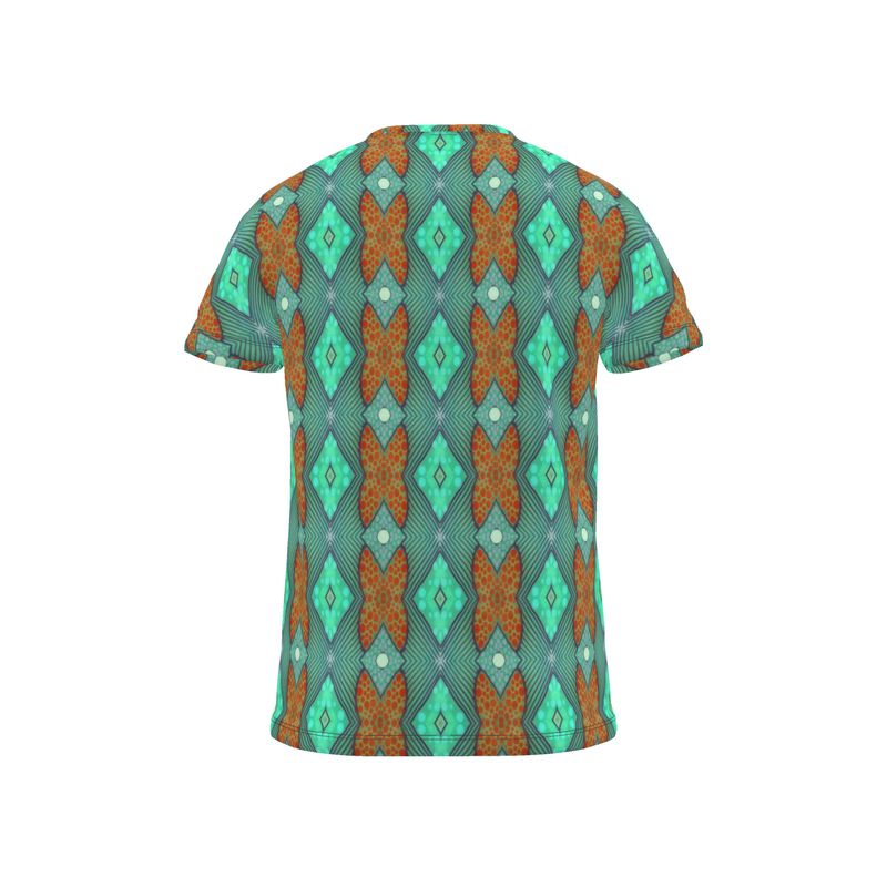 Beautiful, richly patterned soft geometric t shirt based on the lampwork of Mindy Macgregor.