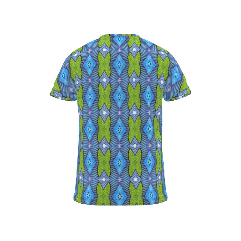 Beautiful, richly patterned geometric t shirt based on the lampwork of Mindy Macgregor.